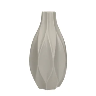 Wymiary: śr. 15 cm, wys. 30 cm. Materiał: kamionka. Kolor: szarobeżowy. Kamionkowy wazon o geometrycznej strukturze. Kamionkowy wazon w delikatnym szarym odcieniu. Doskonale nadaje się do prezentowania delikatnych kompozycji kwiatowych lub pojedynczego kwiatu.