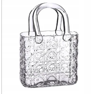 Łączący w sobie prostotę i elegancję - szklany wazon w kształcie torebki z uchwytami. Cechy produktu: materiał: Szkło wysokość: 28 cm szerokość: 11 cm długoś...