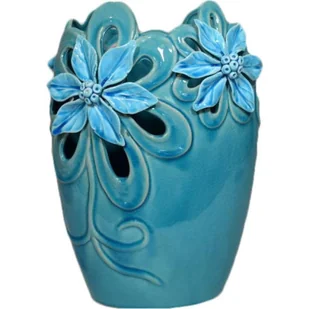 Wazon Turkusowy z Motywem Kwiatowym o Antycznym Wy