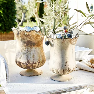 Stylowe dekoracje w kształcie kielichów kwiatowych. Wykonane z wysokiej jakości dmuchanego szkła. Różne wykończenia powierzchni - do wyboru przezroczyste szkło lub srebrzenie - nadają im atrakcyjny, elegancki wygląd. Wspaniały zestaw dekoracyjny do domu w stylu rustykalnym lub shabby chic, którego uroczy design przyciąga wzrok i tworzy nastrojową atmosferę w pomieszczeniu. Wykonano je w stylowym kształcie przywodzącym na myśl kielich kwiatowy – mają matowe antyczne wykończenie na zewnątrz i srebrne wewnątrz lub są wykonane z przezroczystego szkła bez wykończenia.