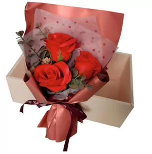 Wszyscy uwielbiamy otrzymywać kwiaty i zawsze są one mile widzianym prezentem. Mydlane kwiaty są uniwersalnym i wyjątkowym prezentem. Wielkość bukietu: 20x13cm Wymiary pudełka: 26x16x8,5cm