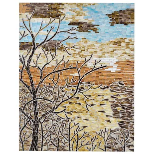 Mozaika z motywem natury . Ta dekoracja ścienna wprowadzi przytulną atmosferę do twojego pomieszczenia. Wykonana z najwyższą precyzją z małych, szklanych kawałków, mozaika przedstawia naturę w swoich ciepłych, spokojnych kolorach. Stanowi wyjątkowe rękodzieło, które wzbogaci wystrój każdej ściany oraz całą aranżację. Będzie wyglądać świetnie w połączeniu z innymi akcesoriami o ciepłych tonach.