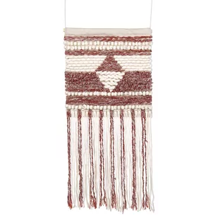 Dekoracja ścienna w stylu boho z frędzlami . Inspirowana kulturami świata, ta dekoracja ścienna będzie oryginalnym akcentem w aranżacji twojego pomieszczenia. Posiada wyszyty ręcznie wzór geometryczny oraz ozdobne frędzle w białym i ciemnoczerwonym kolorze. Akcesorium zostało wykonane niemal w całości z wełny – wysokiej jakości naturalnego materiału – co czyni je wyjątkowo miękkim i przyjemnym w dotyku. Dekoracja będzie ciekawym dodatkiem do sypialni lub do pokoju dziecięcego.