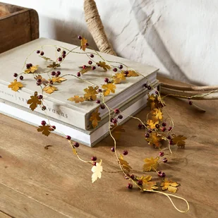 Girlanda jest także elastyczna, dzięki czemu można ją dowolnie udrapować. Umieść ją na parapecie w swojej pięknej kuchni lub przy drzwiach wejściowych – wyobraźnia nie ma granic! Gdziekolwiek użyjesz tej czarującej dekoracji, jesienna atmosfera jest gwarantowana.
