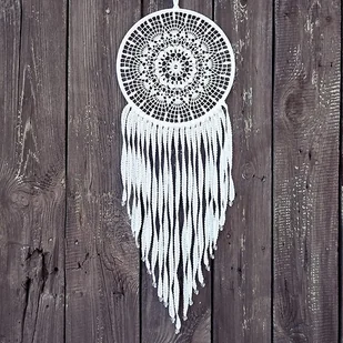Biały łapacz snów Isabel powstał z zaprojektowanej przeze mnie serwetki. Ozdobiłam go szydełkowymi koronkami i szklanymi koralikami. Wszystkie elementy łapacza stworzyłam ręcznie z dbałością o najdrobniej ...
