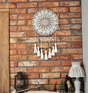 Wyjątkowy łapacz snów w kolorze ecru z obręczą oplecioną sznurkiem jutowym. Całość wykonana szydełkiem; ozdobiony chwostami i drewnianymi koralikami; średnica koła 38cm, długość całkowita 72cm. Wszystkie łapac ...