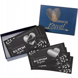 KUPONY DOZNAŃ! Doskonałe zdrapki na Dzień Chłopaka! Kupony podkręcające atmosferę w związku! Doskonały prezent na Walentynki, Rocznicę, Dzień Chłopaka lub bez okazji. Zestaw zawiera dyskretne pudełeczko w granatowym kolorze. W środku znajduje się 10 osobnych bonów-zdrapek wydrukowanych na grubym papierze. Każdy kupon zawiera inne “zadanie” do zdrapania. "Zadania" pod warstwą ścieralną mogą być namiętne, seksowne i dzikie.