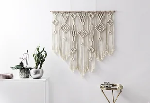 'KOLIA'. Makramowa dekoracja ścienna w rozmiarze XXL. Doskonała jako ozdoba nad kanapą, nad łóżkiem, w pokoju dziennym. Wyplatana z wysokiej jakości sznurka (szlachetny, silny splot, piękna barwa, 100% ba ...