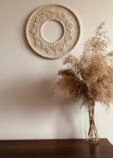 Makrama Mandala to wyjątkowa dekoracja, która wprowadzi do Twojego wnętrza harmonię, równowagę i spokój. Stworzona z naturalnych, bawełnianych sznurków w ciepłym odcieniu beżu, ta ręcznie robiona ozdoba o wy ...