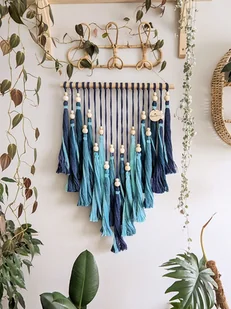 Makrama morska dekoracja z chwostami, niebieska ozdoba na ścianę