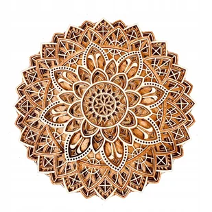 Mandala na ścianę w rozmiarze 35x35cm, wykonana ze sklejki, grubość całkowita 3,2 cm). Bardzo szczegółowa i precyzyjnie wycięta laserem dekoracja do wnętrz. ...