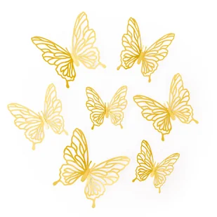 Ozdobne Motylki ażurowe złote do dekoracji 12szt Ozdobne, złote motylki to wyjątkowy zestaw 12 delikatnych, złocistych motyli, które doskonale sprawdzą się j...