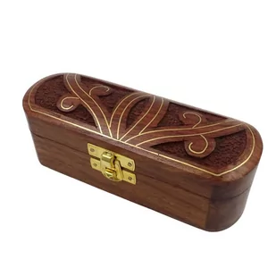 Podłużne Pudełko Drewniane – SE19; 15,2 x 5,1 cm Podłużne Pudełko Drewniane, w którym możesz przechowywać łańcuszki i inne kosztowności. Pudełko może również służyć jako gustowne opakowanie na prezent. Podłużne Pudełko: Materiał: drewno Zdobienia mosiężne Kolory: brąz, złoty Pudełko zamykane na zatrzask Wymiary:
