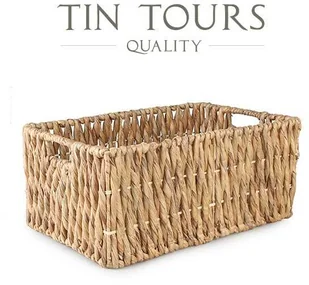 PROSTOKĄTNY KOSZ Z HIACYNTU WODNEGO 44x30x20 cm Duży, prostokątny kosz do przechowywania to rozwiązanie idealne do twojego domu. Dzięki swojej formie kosz z hiacynta wodnego wygodnie ułożysz na regale, schowasz w szafie czy postawisz obok sofy. To minimalistyczny i piękny dodatek, który wzbogaci twoje wnętrza. Kosz z rączkami został wykonany z naturalnego materiału, jakim jest hiacynt wodny. Kosz do przechowywania został wypleciony ręcznie, dzięki czemu każda sztuka jest inna i niepowtarzalna, a równocześnie precyzja wykonania sprawia, że kosze świetnie prezentują się postawione w większej ilości obok siebie.