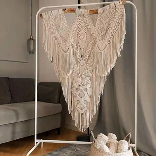 Projekt został wykonany ze sznurka plecionego z rdzeniem bawełnianym w kolorze naturalnym. Szurek w 100% bawełniany z recyklingu. Makrama na zamówienie. Wymiary: Szerokość- 90m Długość - 135cm ...