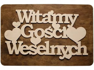 Tablica witająca z napisem - DUŻA 60cmx37cm!!! Drewniana, malowana, udekorowana wycinanym laserowo drewnianym napisem tablica powitalna. Tablica witamy gości jest oryginalnym elementem wystroju sali. Jej zadaniem jest przywitać każdego gościa weselnego, tak aby poczuł się wyróżniony z tłumu, zauważony, jakby to młoda para przywitała go osobiście. Tablica ślubna z przykładu została przygotowana w stylu naturalnym, boho.