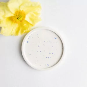 Taca dekoracyjna Terrazzo Bianco&Blu, wykonana została z gipsu polimerowego, który jest materiałem naturalnym dlatego kolor może nieznacznie różnic się od tego prezentowanego na zdjęciu, a malutkie bąbelki powietrza są naturalnymi cechami dla tego materiału. Tace są zaimpregnowane dlatego nie pochłaniają wilgoci. Produkt jest przyjazny środowisku, jest bezzapachowy. Zestaw zawiera 2 sztuki podstawek. Wymiary: Średnica 11 cm Kolor: