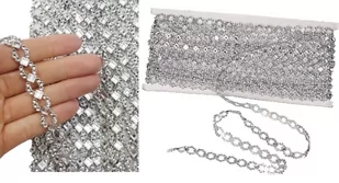 Przedmiotem sprzedaży jest taśma ozdobna imitująca cyrkonie. Taśmę można dowolnie przycinać w poprzek bez utraty jej walorów estetycznych i użytkowych. Nie jest sztywna, bardzo ładnie się układa. Doskonała do wszelkiego rodzaju dekoracji świeczek, pudełek, wazonów itp. CENA ZA 9,10 M szerokość 12 mm kolor srebrny ZAPRASZAM NA POZOSTAŁE AUKCJE GDZIE DOSTĘPNE SĄ INNE KOLORY ORAZ WZORY