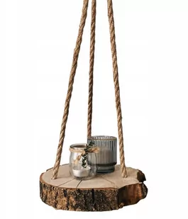 Wyjątkowa, wisząca półka z plastra drewna Jeżeli szukasz niepowtarzalnej półki na kwiaty w doniczce bądź świeczki, to doskonale trafiłeś / trafiłaś! Kto nie kocha drewna? Oferujemy klimatyczną, ręcznie wykonaną dekorację w formie surowego plastra drewna połączonego ze sznurem jutowym. Doskonałe uzupełnienie aranżacji do domu, ogrodu, restauracji bądź przestrzeni biurowej - wszechstronność wykorzystania tego produktu nie zna granic: ) W komplecie znajduje się plaster drewna oraz sznurki jutowe związane z pętelkę (produkt jest gotowy do zawieszenia). Informacje techniczne: Rodzaj drewna: