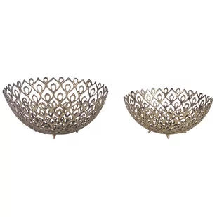 Komplet mis ażurowych. Wprowadź do swojej aranżacji efekt glamour i dodatkowe miejsce do przechowywania dzięki temu zestawowi dwóch eleganckich mis. Dzięki ażurowej konstrukcji ze złotym wykończeniem z pewnością zwrócą uwagę na każdym stole. Stanowią idealne miejsce do wyeksponowania akcesoriów dekoracyjnych. Użyte w nowoczesnym wnętrzu będą przyciągającym wzrok luksusowym akcentem ozdobnym.