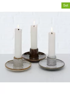 Boltze Świeczniki (3 szt.) "Malinka" w kolorze brązowym i szarym - wys. 6 cm