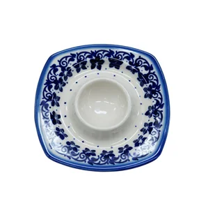Podstawka na jajko w kształcie kwadratowego talerzyka z wyprofilowanym na środku pojemnikiem na jajko. To produkt oryginalnej ceramiki bolesławieckiej, powstały według tradycyjnych metod wytwarzania ceramiki artystycznej, ręcznie zdobionej w manufakturze ceramiki artystycznej, ANDY CERAMIKA. Naczynie ceramiczne, które służy jako kieliszek na jajko dla dzieci i dorosłych, jest to praktyczne naczynie do podawania jajek na miękko lub jajek na twardo. Miłośnicy wiejskich jaj prosto z kurnika będą zdumieni prostotą i funkcjonalnością naczynia. Obok ułożonego jajka jest wystarczająco dużo miejsca na ułożenie skorupek jajka, oparcie łyżeczki czy umieszczenie szczypty soli i pieprzu.