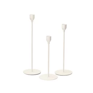 Zestaw białych świeczników wykonanych z metalu. Nowoczesny komplet trzech świeczników to propozycja eleganckiej dekoracji wnętrza. Ozdób nimi stół w jadalni podczas kolacji, a serwowane posiłki zyskają na atrakcyjności. Świeczniki sprawdzą się także na co dzień, szczególnie w jesienno-zimowe wieczory. Uniwersalny kolor i prosta forma dobrze zaprezentują się w pomieszczeniach w stylu minimalistycznym i skandynawskim.