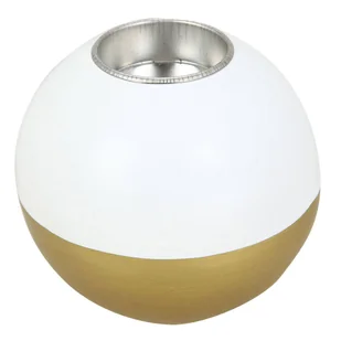 Złoto-biały świecznik w kształcie kuli - elegancki dodatek do Twoich świątecznych aranżacji Materiał: drewno Kolory: biały i złoty Wymiary: średnica 10 cm Pr...