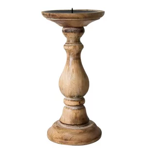 H&S Decoration Świecznik z drewna mango 30 cm brązowy
