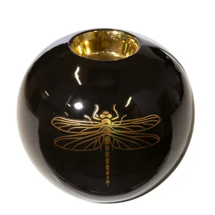 Świecznik czarny kula nadruk złoty ważki 12X12X10 LORI