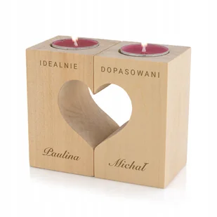 Drewniany świecznik z indywidualną personalizacją na prezent z okazji Walentynek Romantyczna kolacja we dwoje przy świecach? Czemu nie! Doskonałą oprawa uczt...