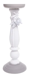 świecznik drewniany z kwiatkami i motylami biały trzon i beżowe podstawy