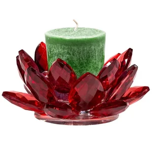 Świecznik kryształowy Lotos - czerwony Elegancki świecznik na świece w kształcie lotosu wykonany z kryształu. Pasuje również do świec wotywnych. Lotos symbol...