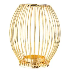Świecznik metalowy szprosowy 12 x 12 x 18 cm złoty
