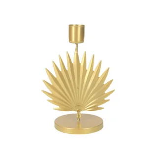 ŚWIECZNIK METALOWY ZŁOTY Z OZDOBNYM LIŚCIEM