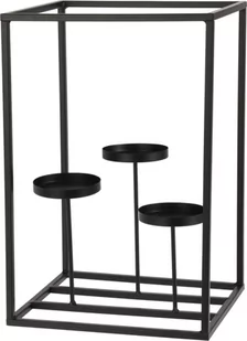 Nowoczesny świecznik metalowy - idealny do wnętrz industrialnychTyp: Nowoczesny świecznikMateriał: Metal, malowany na czarnoWymiary: Wysokość: 36 cm, Długość: 24 cm, Szerokość: