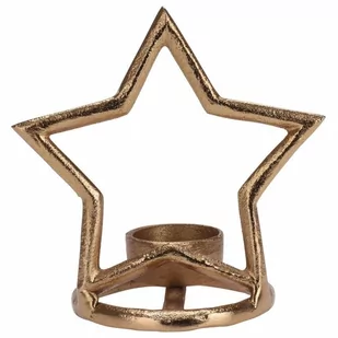 NA TEALIGHT - Świecznik w kształcie gwiazdy o wymiarach 15 x 15,5 cm. Idealny na świeczki typu tealight o maksymalnej średnicy 4 cm. SOLIDNY - Wykonany z najwyższej jakości aluminium w złotym kolorze. Świecznik posiada okrągłą podstawę, która zapewni stabilność. INDUSTRIALNY STYL - Utrzymany w industrialnym stylu typu LOFT.