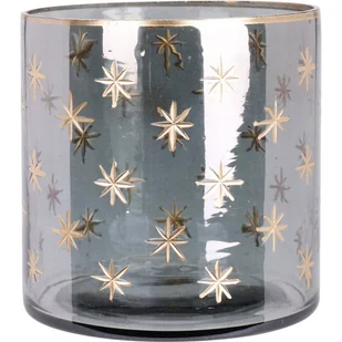 Świecznik szklany tealight z gwiazdami 10 cm - elegancja i funkcjonalność w Twoim wnętrzu Średnica: 10 cm Materiał: wysokiej jakości szkło Kolor: szary z zło...