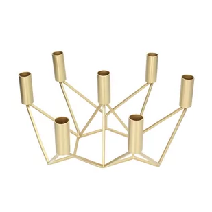 Elegancki świecznik metalowy w kolorze złotym. Siedmioramienny świecznik świąteczny w kolorze złotym został zaprojektowany z myślą o umieszczeniu w nim aż 7 świec, co tworzy niesamowity efekt wizualny. Kiedy je zapalimy i umieścimy w środku, tworzy się przyjemna atmosfera ciepła i blasku. Ten idealny dodatek do świątecznego stołu lub kominka sprawia, że wnętrze nabiera magicznej atmosfery. Świecznik Orija to nie tylko praktyczny element dekoracyjny, ale wyjątkowa świąteczna ozdoba, która przyciąga uwagę i dodaje uroku każdej świątecznej aranżacji.