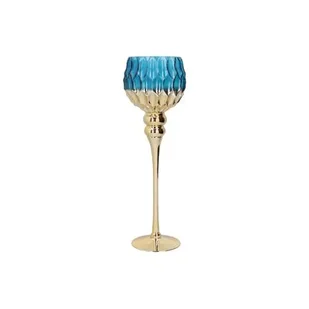 Świecznik szklany 13 x 40 cm niebiesko-złoty