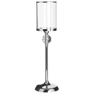 Świecznik. Styl: Glamour. Kolor główny: Srebrny. Rodzaj materiału: Szkło. Materiał: Szkło. Ręczne wykonanie: Nie. Wymiary: Głębokość: 16 cm. Szerokość: 16 cm. Wysokość: 58 cm. Waga: 1 kg. W ofercie: 1 x Świecznik. Cechy produktu: