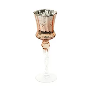 Prezentowane świeczniki to produkt dla wszystkich tych, którzy lubią otaczać się pięknymi dodatkami wystroju wnętrz. Spewnościa znajdą tutaj coś dla siebie zarówno miłośnicy klasyki, jak i nieco bardziej nowoczesnego wzornictwa, oraz eleganckim stylu. Ustawione klika razem obok siebie lub rozstawione będą tworzyć ładna i subtelną dekorację. Świecznik dekoracyjny , kolor ZŁOTY. Skład: szkło