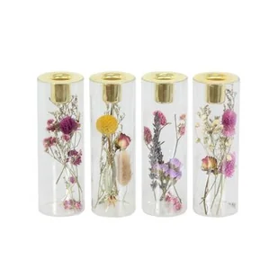 Świecznik szklany suszone kwiaty 16 x 5 cm