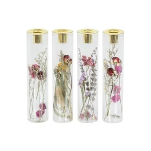 Świecznik szklany suszone kwiaty 23 x 5 cm