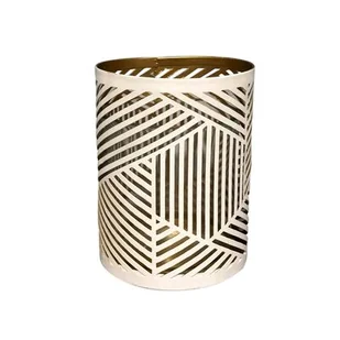 Świecznik szklany w metalowej osłonie 7,5 x 7,5 x 11 cm biało-złoty
