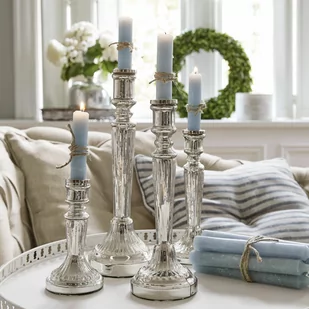 Ten przepiękny zestaw złożony z czterech świeczników wypełni magią świąteczne dni. Cztery świeczniki w stylu vintage ze srebrzonego szkła przechwytują i odbijają ciepłe światło świec. Możesz zapalić jedną świecę w każdym tygodniu adwentu. A jeżeli nie lubisz czekać, możesz zapalić od razu wszystkie. Ten czarujący zestaw idealnie nadaje się do własnych adwentowych aranżacji.
