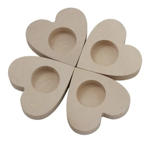 ZESTAW ŚWIECZNIKÓW drewnianych SERCA bukowe Wprowadź do swojego znętrza ciepło i naturalny urok z zestawem 4 świeczników w kształcie serca. Ten elegancki kom...