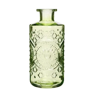 Ozdobna, zielona, szklana butelka z tłoczeniami Wyjątkowa, ozdobna szklana butelka w formie wazonu z serii Berlin soft green marki IDEAS 4 Seasons. Butelka o...