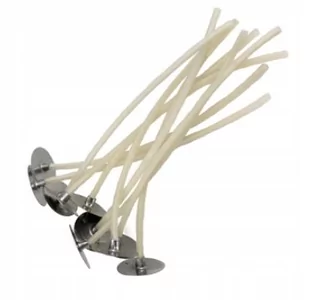 10x Knot bawełniany do świec 12cm Knot przeznaczony jest do użycia w woskach naturalnych jak również parafinach, do zalewania w naczyniach jak też i do świec wolno stojących, odlewanych w formach. Wymiary: Długość: 12 cm Grubość: 15N Ilość: 10 sztuk Knoty wysyłany są z metalowymi podkładkami. wyprodukowane w Polsce. Jak palić świece z knotem drewnianym? Knoty z drewna przewodzą znacznie mniejszy płomień, niż klasyczne bawełniane.