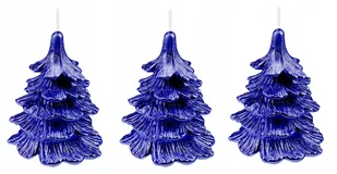 3 x świeczki świąteczne choinka 10 cm cała granatowa Dekoracyjne świece w kształcie choinki. Świeczki zanurzone w granatowym lakierze + obsypane granatowym b...